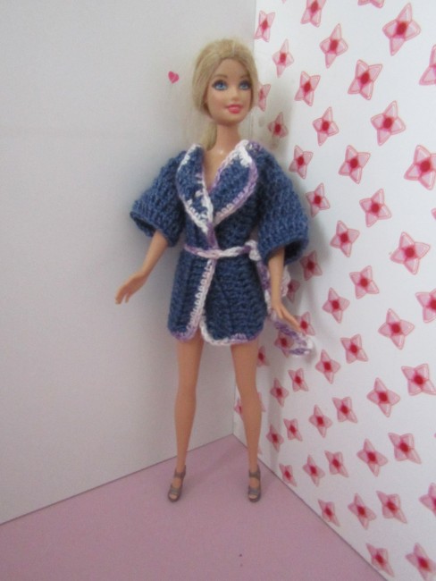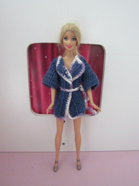 Manteau avec ceinture fait main au crochet pour poupée Barbie.
